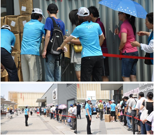 持续的梅雨高温闷热天气挡不住游客们对世博的热情,“排队”成了世博之行的关键词。记者了解到,为了让游客们有更好的游园体验,高级赞助商新世傲与交通银行联手开展“人性世博 温馨凳子爱心大传递”的活动,定期在人流集中爆发的每周周六,于世博园内固定地点免费派发折叠椅,为游园者提供便利服务,充分体现世博赞助企业对游客们的关爱和最实际的服务。
